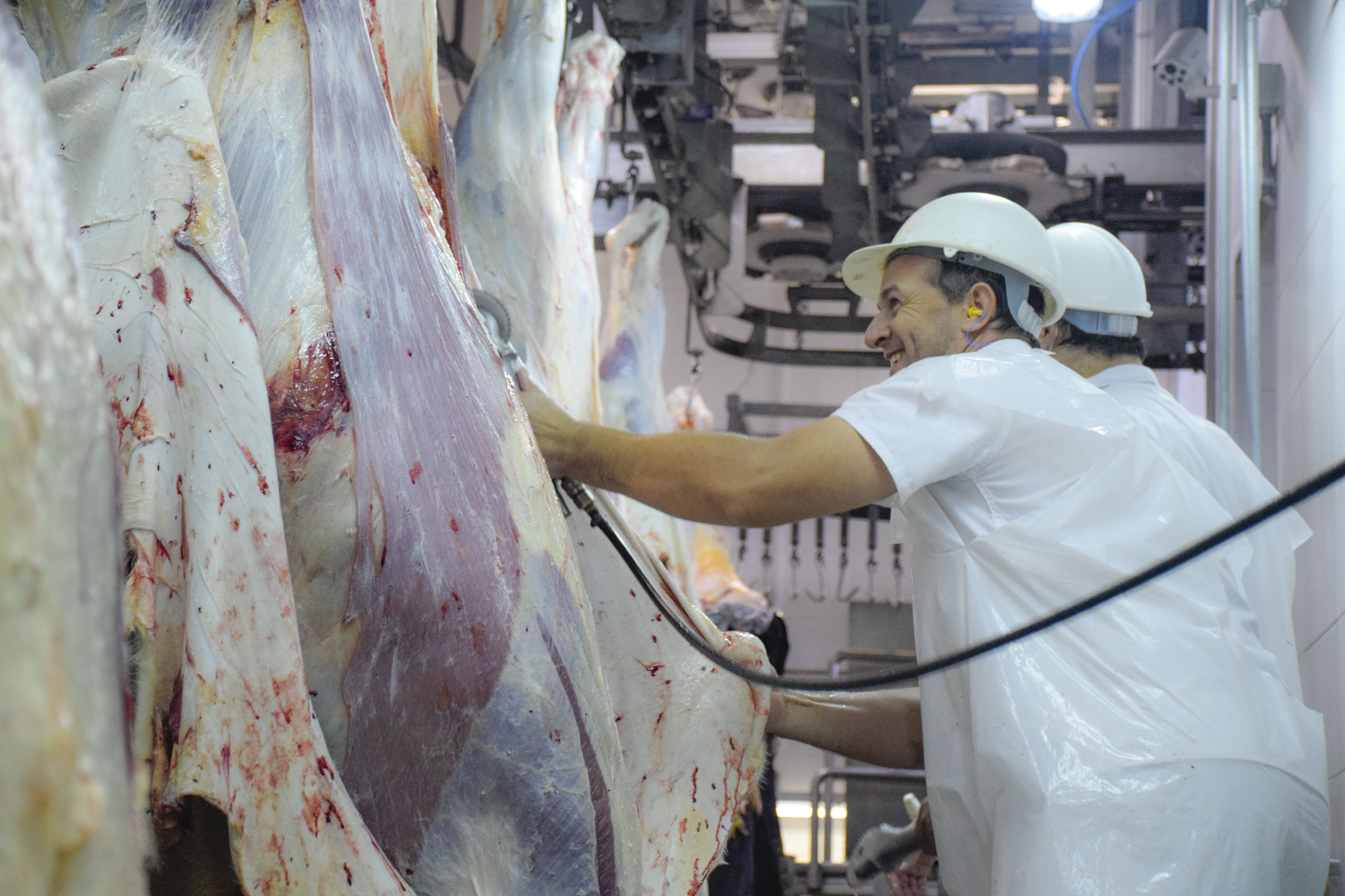 En FRIGORÍFICO ROSARIO trabajan 380 personas, 45 dedicadas exclusivamente a la línea de matanza. Desde el noqueo al sellado final la faena está enmarcada en una rigurosa limpieza y pureza de procedimientos y en donde las reses en su tiempo justo transitan por todas las etapas, llegando a las cámaras frigoríficas desde donde parten tanto hacia el abasto como al posterior tratamiento en vistas a su exportación.